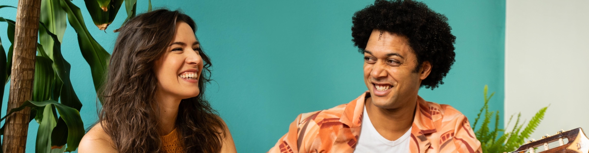 Op zoek naar een intiem duo met Braziliaanse en Latin muziek, warme samenzang en ritmische gitaar voor jouw podium of festival?